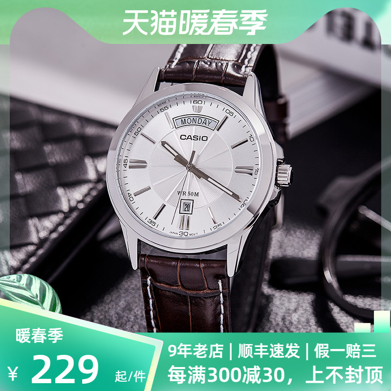 卡西欧手表男潮Casio休闲指针商务钢带皮带石英男士表MTP-1381L